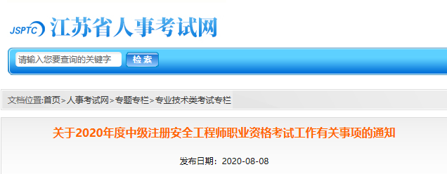 江苏关于2020年度中级注册安全工程师职业资格考试工作有关事项的通知,安全工程师报名报名条件:8月17日9:00~26日,具体内容如下。